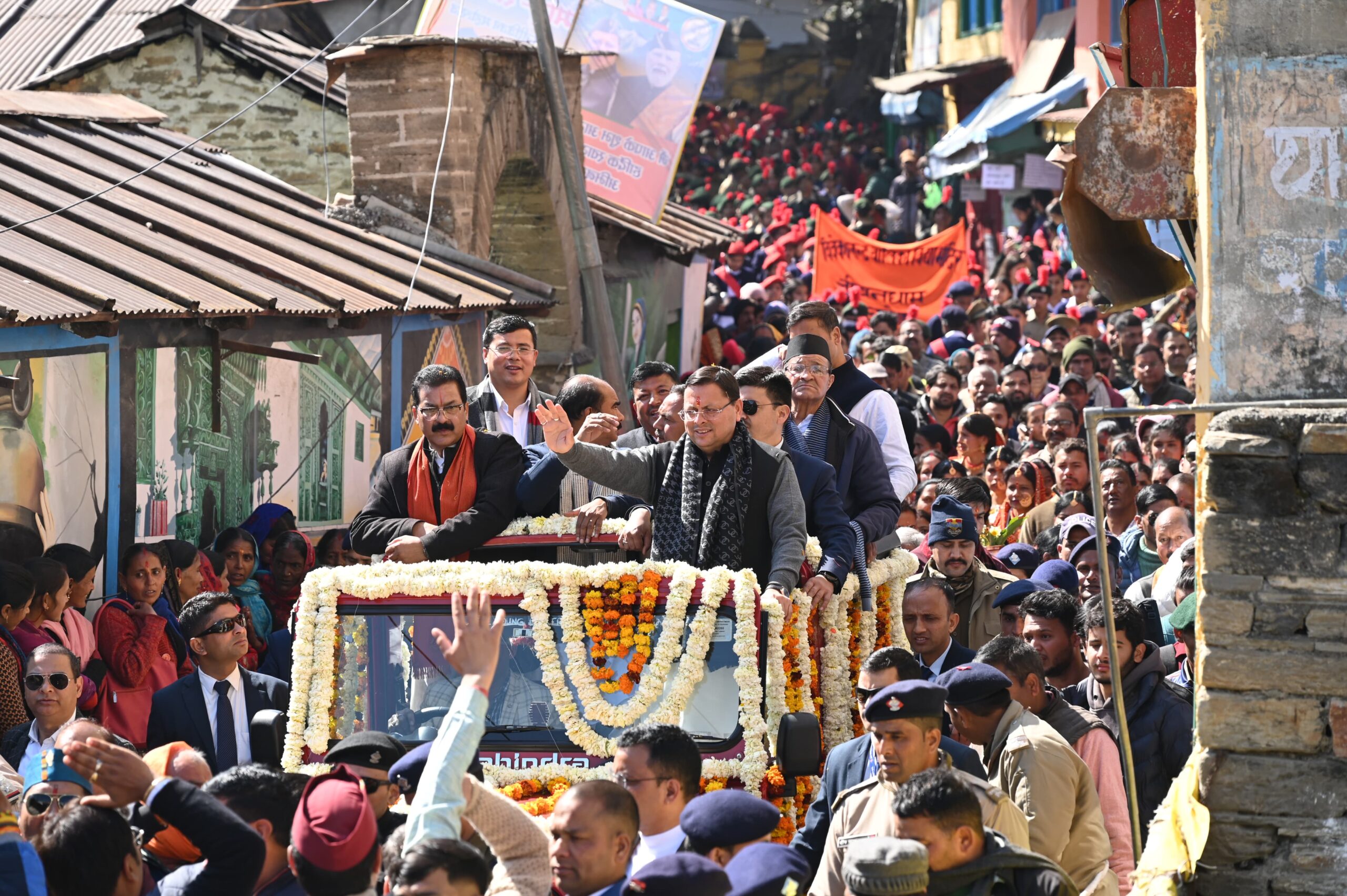 मुख्यमंत्री का अल्मोड़ा में विशाल रोड शो,सड़कों में दिखा जन सैलाब