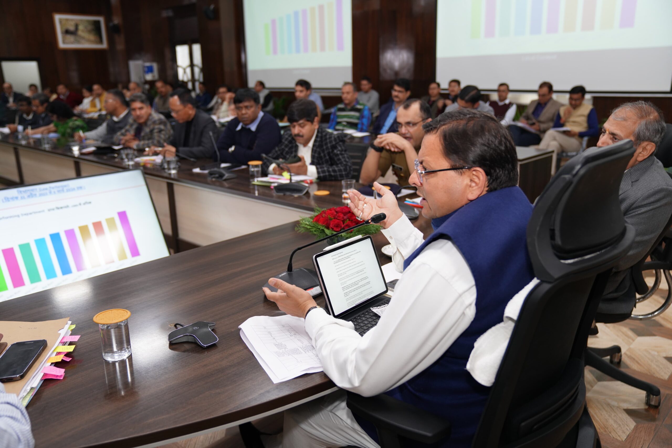 इस अवसर पर उपाध्यक्ष अवस्थापना अनुश्रवण परिषद विश्वास डाबर, अपर मुख्य सचिव आनंद बर्द्धन, प्रमुख सचिव आर. के. सुधांशु, डीजीपी अभिनव कुमार, सचिव शैलेश बगौली, सचिव आर. मीनाक्षी सुंदरम, वर्चुअल माध्यम से विभिन्न जिलों के जिला अधिकारी, पुलिस अधीक्षक एवं अन्य अधिकारी उपस्थित थे।