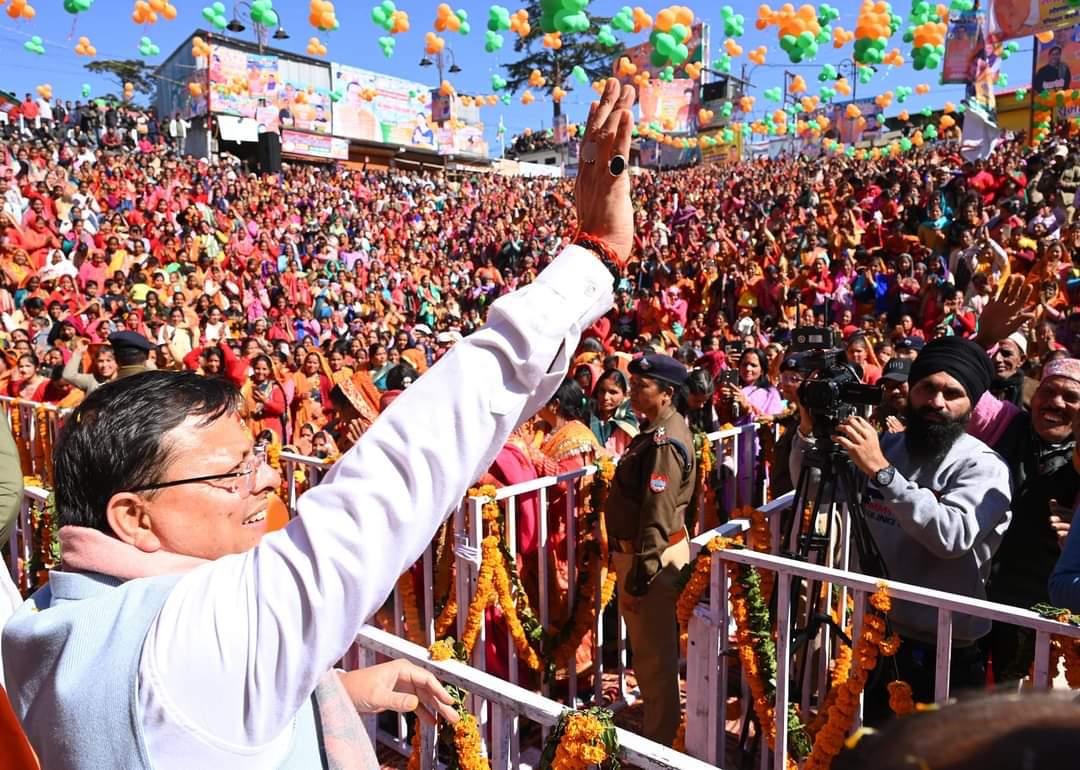 संग्ज्यू कार्यक्रम के दौरान मुख्यमंत्री धामी के लोहाघाट रोड शो में उमड़ा जन सैलाब
