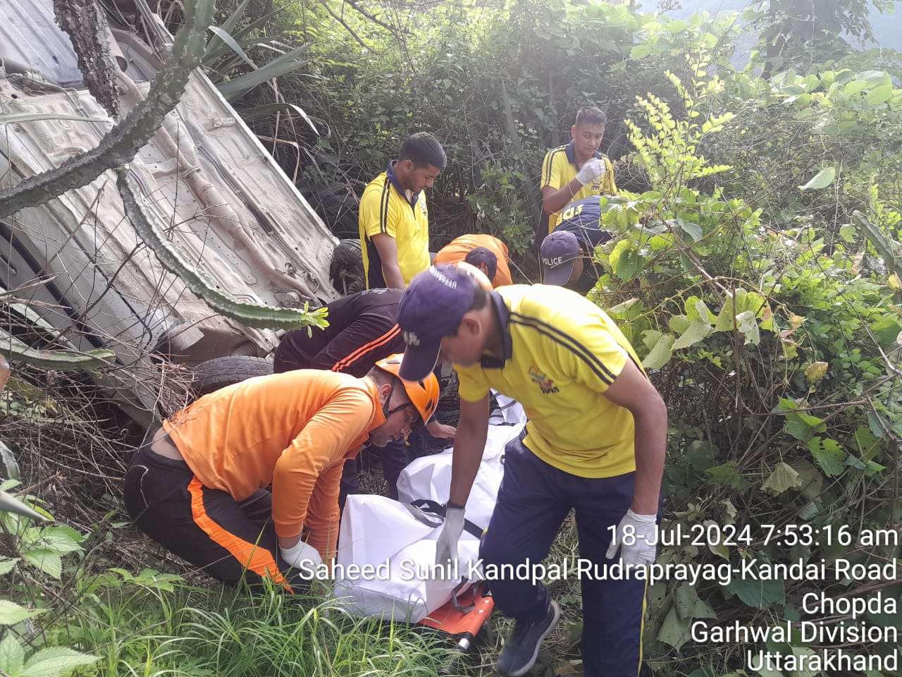 रूद्रप्रयाग। आज तबके सुबह साढे छ बजे चोपडा डुगरी मोटरमार्ग पर एक अल्टो वाहन सख्या uk13A 4341 दुर्घनाग्रस्त हो गया है। जिसमें दो लोगो की मौके मौत हो गई। जबकि चार घायल हो गये। सूचना पर डीडीआरएफ टीम द्वारा मौके पर पहुँच कर रेस्क्यू किया गया और घायल को अस्पताल पहुँचाया गया।