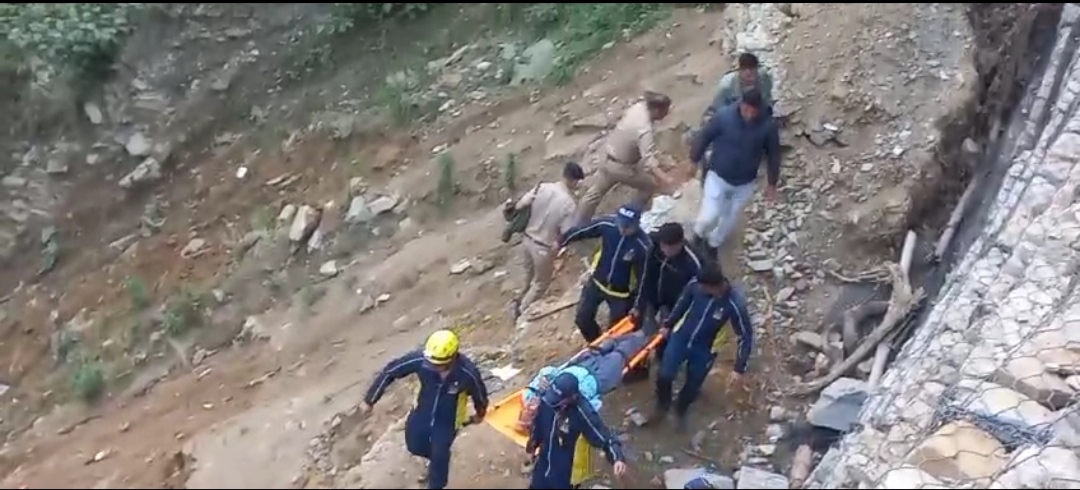 केदारनाथ हाइवे डोळ्या देवी डेंजर जोन पर खाई में गिरा टैम्पो वाहन, चालक गम्भीर घायल