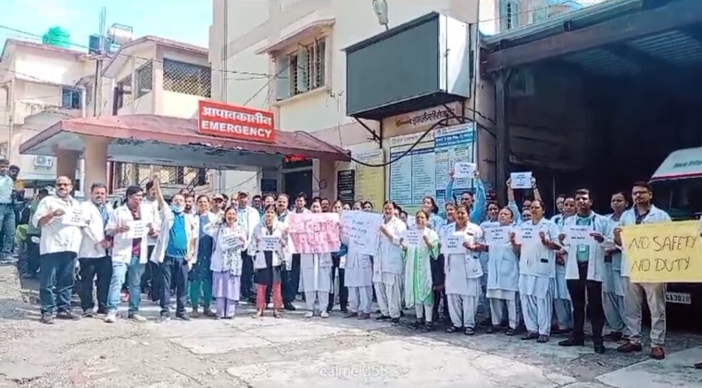 कोलकाता में ट्रेनी डॉक्टर के साथ हुई दरिंदगी को लेकर जिला अस्पताल में कार्य बहिष्कार
