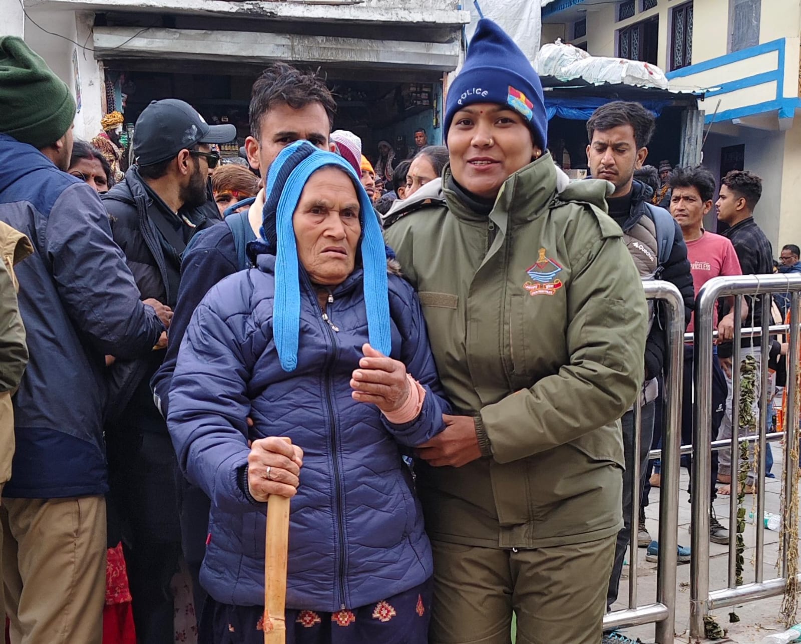 जिस पर वह बहुत खुश हुए तथा उनके द्वारा रुद्रप्रयाग पुलिस का आभार प्रकट किया गया।बाबा केदार के दर्शनों हेतु केदारनाथ धाम पहुंची एक बुजुर्ग महिला श्रद्धालु जिन पर चोट लगी थी। चूंकि वे केदारनाथ पहुंच ही चुकी थी, मन्दिर परिसर में ड्यूटी पर तैनात पुलिस जवानों द्वारा उक्त बुजुर्ग महिला श्रद्धालु को सहारा देकर श्री केदारनाथ के दर्शन कराने में सहायता की गई। तथा भीड़ के बीच से सकुशल निकाला गया।