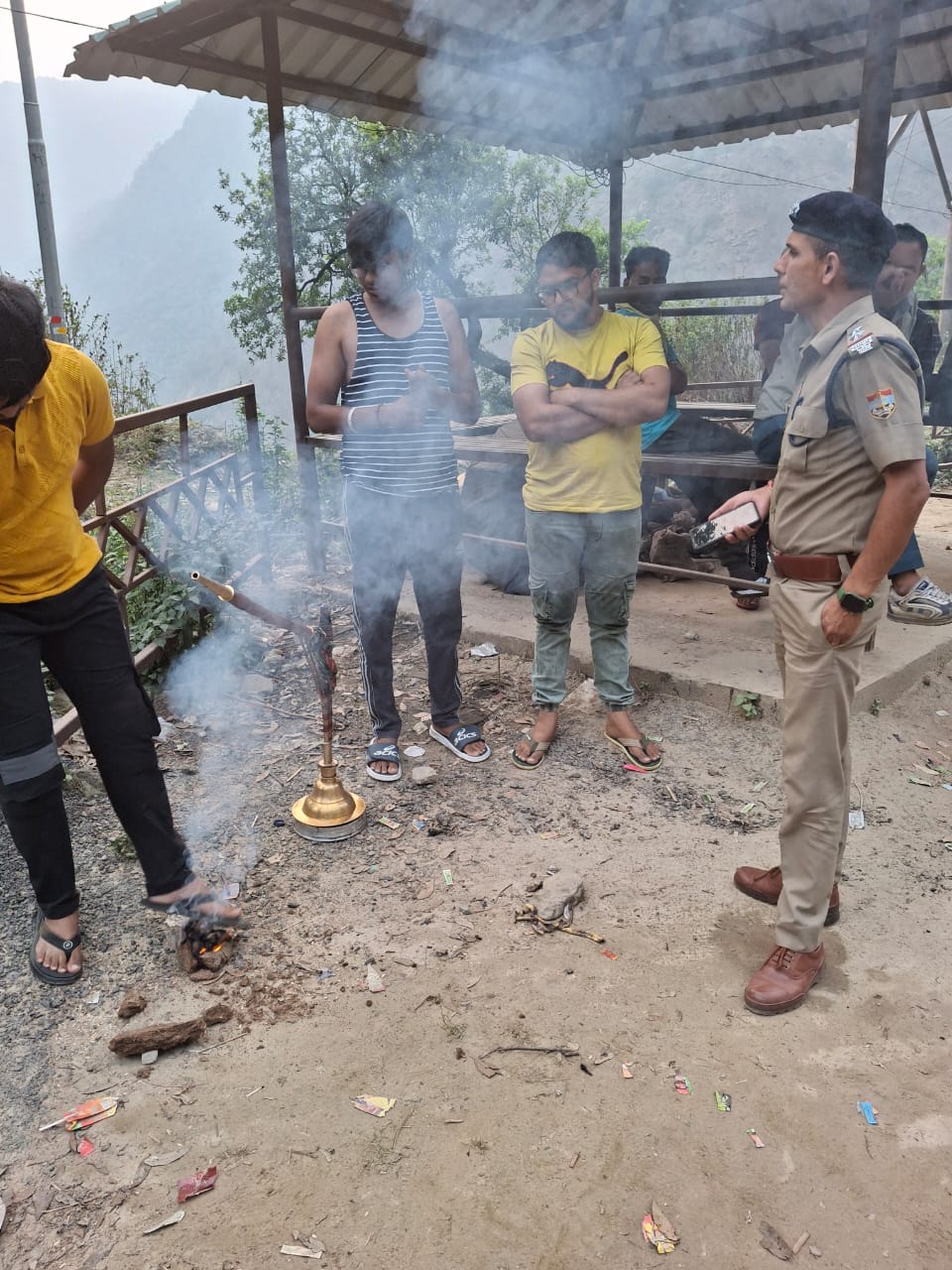 प्रचलित केदारनाथ धाम यात्रा अवधि में जनपद रुद्रप्रयाग पुलिस के स्तर से “ऑपरेशन मर्यादा” चलाया हुआ है। न केवल केदारनाथ धाम अपितु वहां तक पहुंचने के सड़क या पैदल मार्ग पर भी पुलिस की सतर्क दृष्टि है। चौकी फाटा क्षेत्रान्तर्गत गश्त एवं भ्रमण के दौरान पुलिस ने पाया कि सड़क किनारे तीन युवक बेफिक्र होकर हुक्के का सेवन कर रहे हैं।