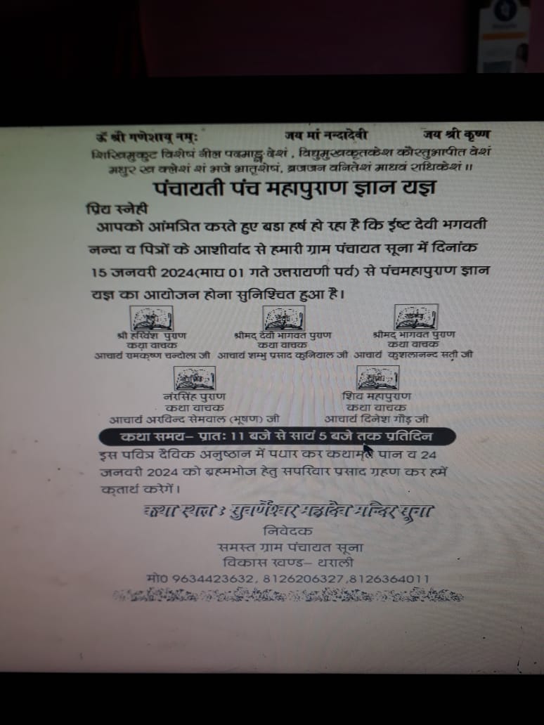 थराली के सूना गांव में 15 जनवरी से 24 जनवरी तक पंच महापुराण यज्ञ का आयोजन