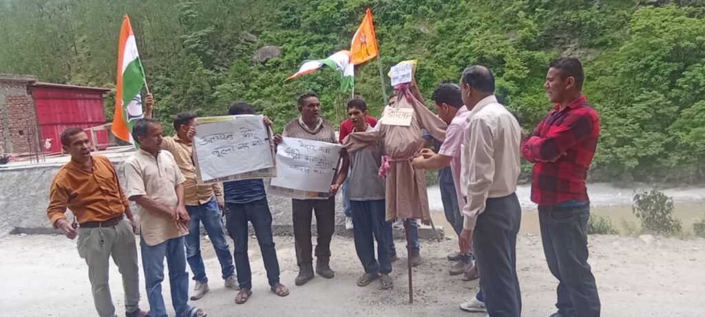 आज बुधवार को ब्लॉक कांग्रेस कमेटी थराली ने ब्लॉक कांग्रेस कमेटी के अध्यक्ष विनोद रावत के नेतृत्व में मुख्यमंत्री पुष्कर धामी का पुतला दहन किया। ब्लाक कांग्रेस कमेटी के अध्यक्ष विनोद रावत का कहना है, कि केदारनाथ मंदिर की जो प्रतिमूर्ति ट्रस्ट द्वारा दिल्ली में बनाई गई है, और 10 जुलाई को भूमि पूजन का कार्यक्रम हुआ है।