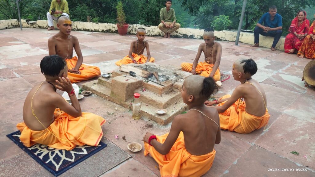 गुरुकुल के प्रबंधक उत्तराखंड की प्रथम युवा महिला कथावाचक पूज्या राधिका जोशी केदारखण्डी एवं नवीन जोशी द्वारा सभी देशवासियों को रक्षाबंधन के पावन पर्व की शुभकामनाएं दी गई।गुरुकुल के आचार्य विवेकानंद एवं संतोष चंदोला द्वारा छात्र चंद्रमोहन,भुवन, प्रमोद,नवीन,राहुल व विवेक को उपनयन संस्कार के बारे में बच्चों को जानकारी एवं गुरुदीक्षा दी,इस दिव्य कार्यक्रम के साक्षी नारायण धाम मंदिर समिति के अध्यक्ष जीत सिंह,लक्ष्मण सिंह व सुदर्शन सिंह आदि क्षेत्रवासी भक्तजन बनें।