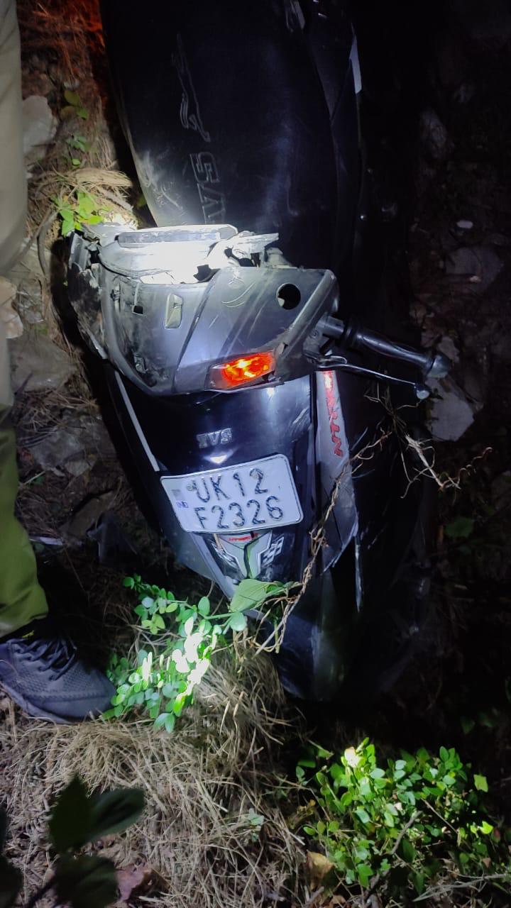 श्रीनगर से पौड़ी की ओर आ रही एक स्कूटी डोभ-श्रकोट के पास अनियंत्रित होकर गहरी खाई में जा गिरी। सूचना मिलने पर क्षेत्राधिकारी सदर पौड़ी प्रेमलाल टम्टा व प्रभारी निरीक्षक गोविंद कुमार पुलिस टीम के साथ राहत बचाव उपकरण के साथ फायर सर्विस सहित मौके के लिए रवाना हुए। सीओ सदर ने बताया कि मौके पर पहुंच स्थानीय लोगों की सहायता से स्कूटी में सवार दोनों घायल युवकों को निकाला गया। बताया कि दुर्घटना में घायल 19 वर्षीय युवक ऋषभ तथा 20 वर्षीय युवक चिराग को उपचार के लिए श्रीनगर अस्पताल भेजा गया। उपचार के बाद दोनों को उनके घर भेज दिया गया है बताया कि जानकारी करने पर पता चला कि स्कूटी सवार युवक श्रीनगर से पौड़ी आ रहे थे। जो डोभ श्रीकोट के पास एक अन्य वाहन को ओवरटेक करते समय अनियंत्रित होकर सड़क से बाहर खाई में जा गिरे