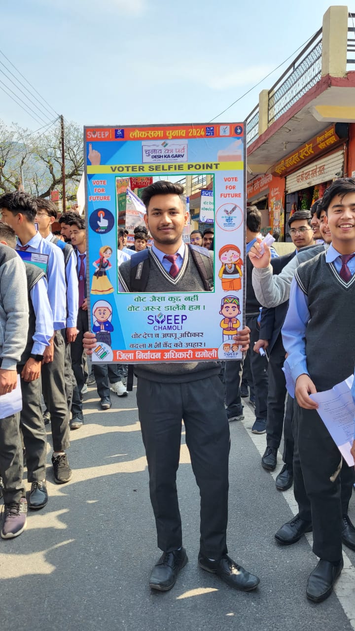 गोपेश्वर में छात्र छात्राओं ने निकाली मतदाता जागरूकता रैली