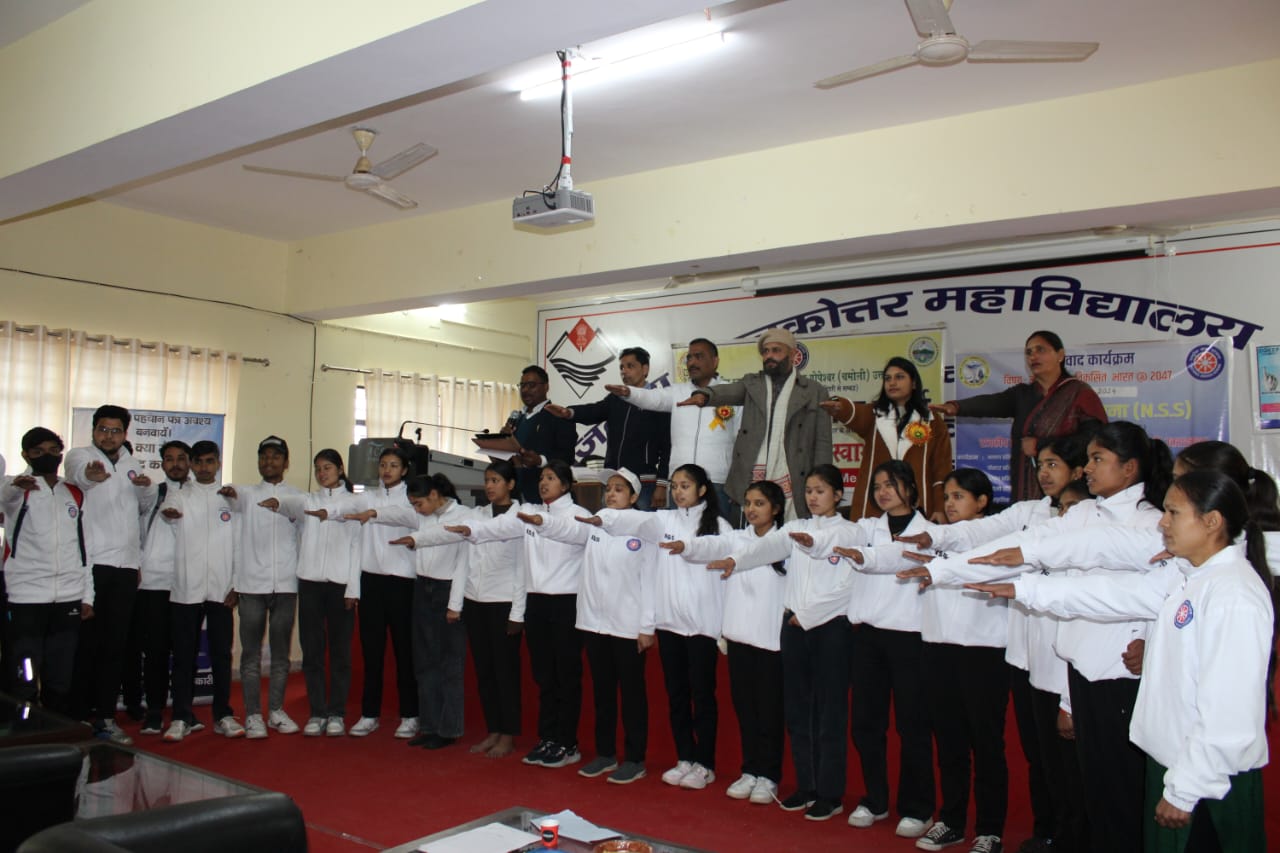 राजकीय स्नातकोत्तर महाविद्यालय गोपेश्वर में गुरुवार को युवा संवाद कार्यक्रम आयोजित किया गया। भारत सरकार के युवा कल्याण एवं खेल मंत्रालय द्वारा जारी अभियान मेरा भारत विकसित भारत @ 2047 के तहत महाविद्यालय की राष्ट्रीय सेवा योजना इकाई द्वारा उक्त कार्यक्रम आयोजित किया गया।